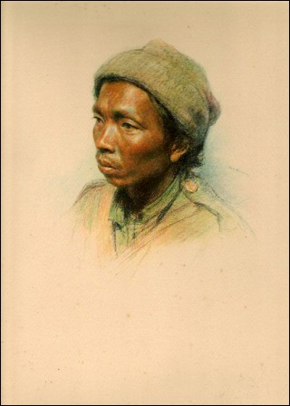 Les Alliés dans la Guerre des Nations héliogravure. Portrait avant la lettre d' Indigène Gurkha Tirailleurs malgaches Armée Britannique d'après les pastels d'Eugène Burnand Imprimerie Crété 1922. Très bonne condition. Eugène Burnand (Capitaine Robert) peintre suisse né le 30 août 1850 à Moudon décede le 4 février 1921 à Paris. Dimensions de la feuille 28.5cm par 39cm, de la partie gravé 23.5cm par 17cm.