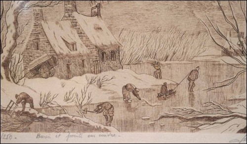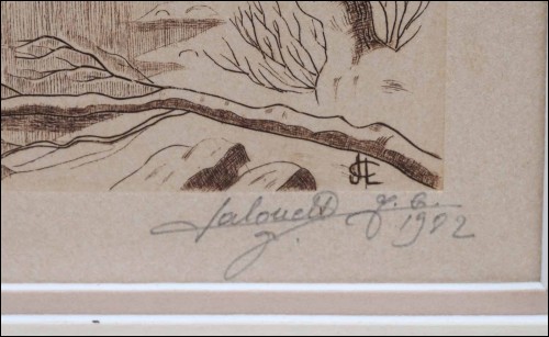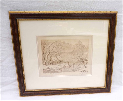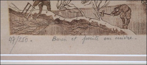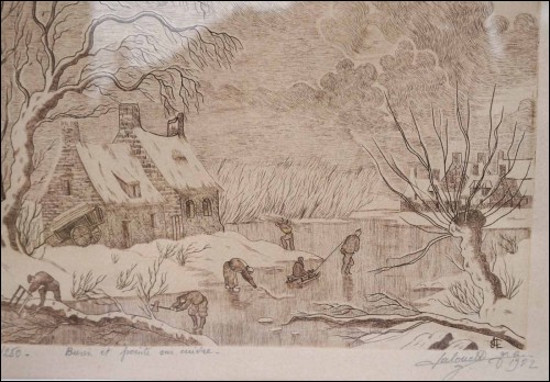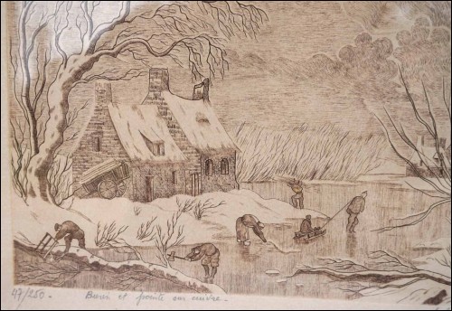 L'hiver au bord du lac, gravure, encadrée, au burin et à la point, par Jean Claude Lalouette peintre graveur en 1982. Signée, datée et numérotée 47/250. Dimensions du cadre 42.5 cm par 37.5 cm, pour la vue 22.5 cm par 17.5 cm. Parfait état.