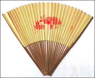 Vintage Japanese hand fan double face with print paper depicting botanical scenes on  bamboo sticks. Unfortunately not in good condition the paper is lightly torn and the fan needs to be linked. It measures 9"1/2 for length.