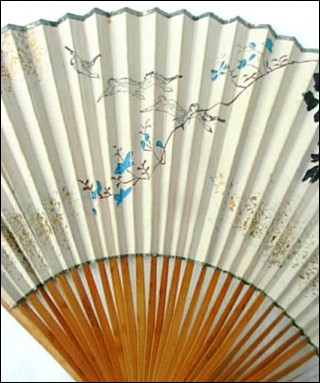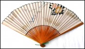 Vintage Japanese hand fan double face with painting paper depicting botanical scenes on bamboo sticks. Good condition. It measures open 14"1/4 width 8"3/4 for length.