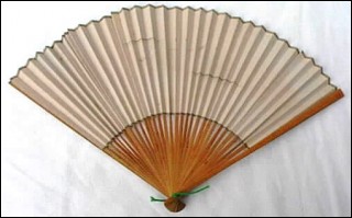 Eventail Japonais vers 1930 double face en papier peint au pochoir sur monture bambou. Bon état. Largeur ouvert 36cm hauteur des bras 22 cm.