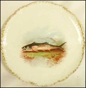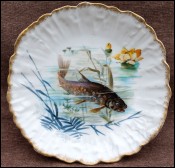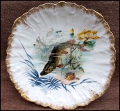 Rainbow Trout Limoges Hand Painted Scalloped Plate Gilt