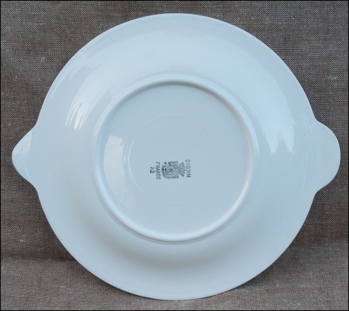 Assiette à poisson de la manufacture de Digoin, en Saône et Loire, née vers 1910. Elle représente un poisson imaginaire de rivière. Elle est signée de la manufacture et porte la mention France: finition de meilleure qualité pour l'exportation. Elle est en parfait état. Largeur 27,5 cm, hauteur 24 cm.