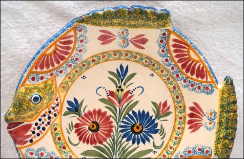 QUIMPER HENRIOT Fish Shaped Plate Corbeille French Faience B