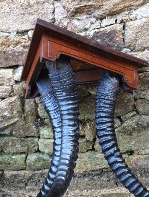 Black forest side end table standing on 3 ibex horn mde early 20th century. 20 7/8" (53cm) height, 18 7/8" (48cm) by side, weight 11lbs 15.78oz (5.437 kilograms). Perfect condition with beautiful patina as shown by the following pictures.