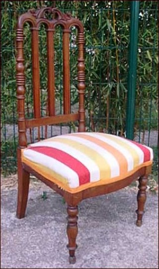 Chauffeuse appelée aussi chaise de nourrice, travail français du milieu du XIX siècle. Elle est en bois d'acajou massif et de rapport pour les traverses. En bon état général, les boules de bas de pieds avant ont remplacées les roulettes et voir un manque de placage sur la traverse avant. Hauteur totale 95 cm, hauteur assise 36.5 cm, largeur 48 cm, profondeur 45 cm.