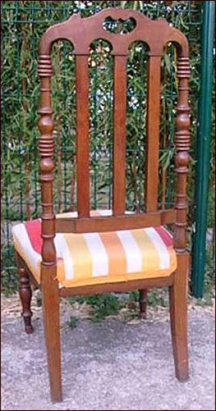 French fireside chair in mahogany made in the middle of the 19th century. It is in solid mahogany only the cross bar are inlayed. Good condition only a small part of the mahogany inlay is missing on the crossbar in front. 37⅜" high 14⅜" sitting high 18⅞" width 17¾" depth.