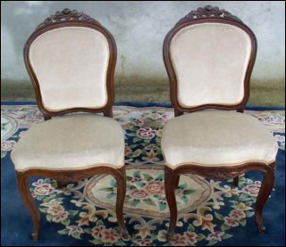 Antique pair of french chair in rosewood made around 1860 Napoleon the 3th period. Good condition only a few small blister on the bottom crossbar and one repair as you can see on the pictures below. The upholstered is recent. High overall 35" sitting high 18"1/8 width 18"1/8 depth 16"1/2