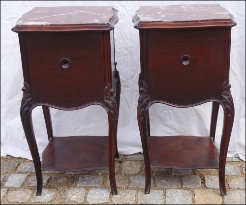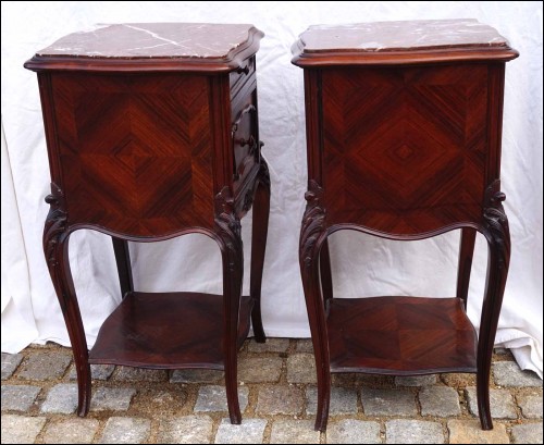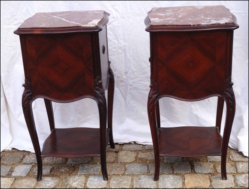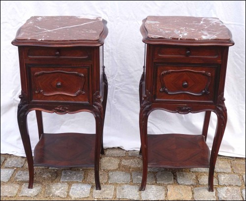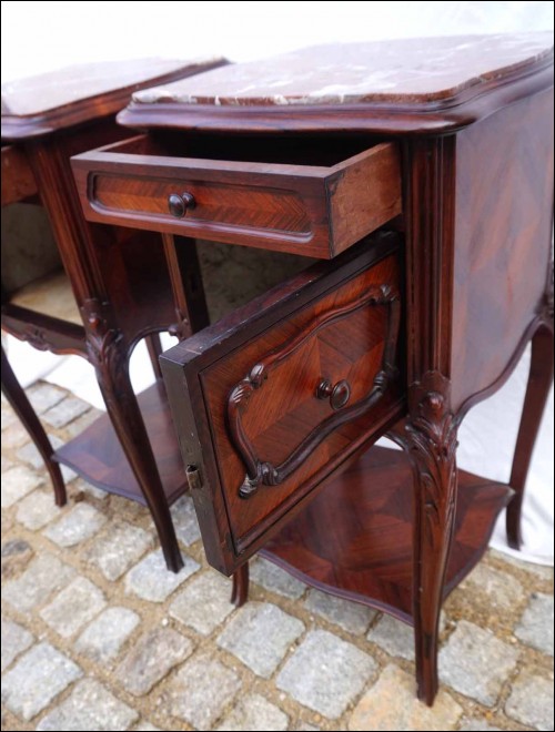 Rosewood Red Marble Top Pair Night Stand Side Table Louis XV 19th C