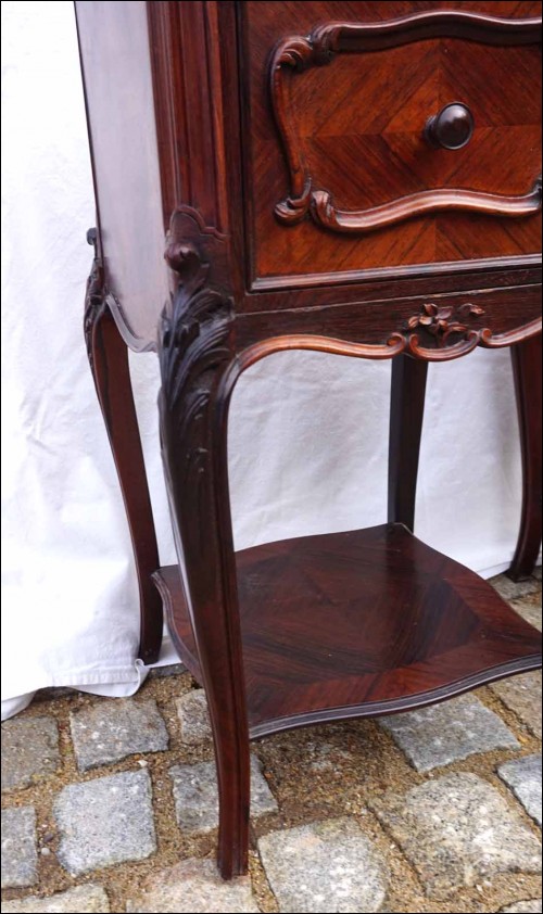 Paire de tables de chevet en palissandre de style Louis XV, époque Napoléon III, vers 1860. Hauteur 75cm, par coté 38cm. Très bel état.
