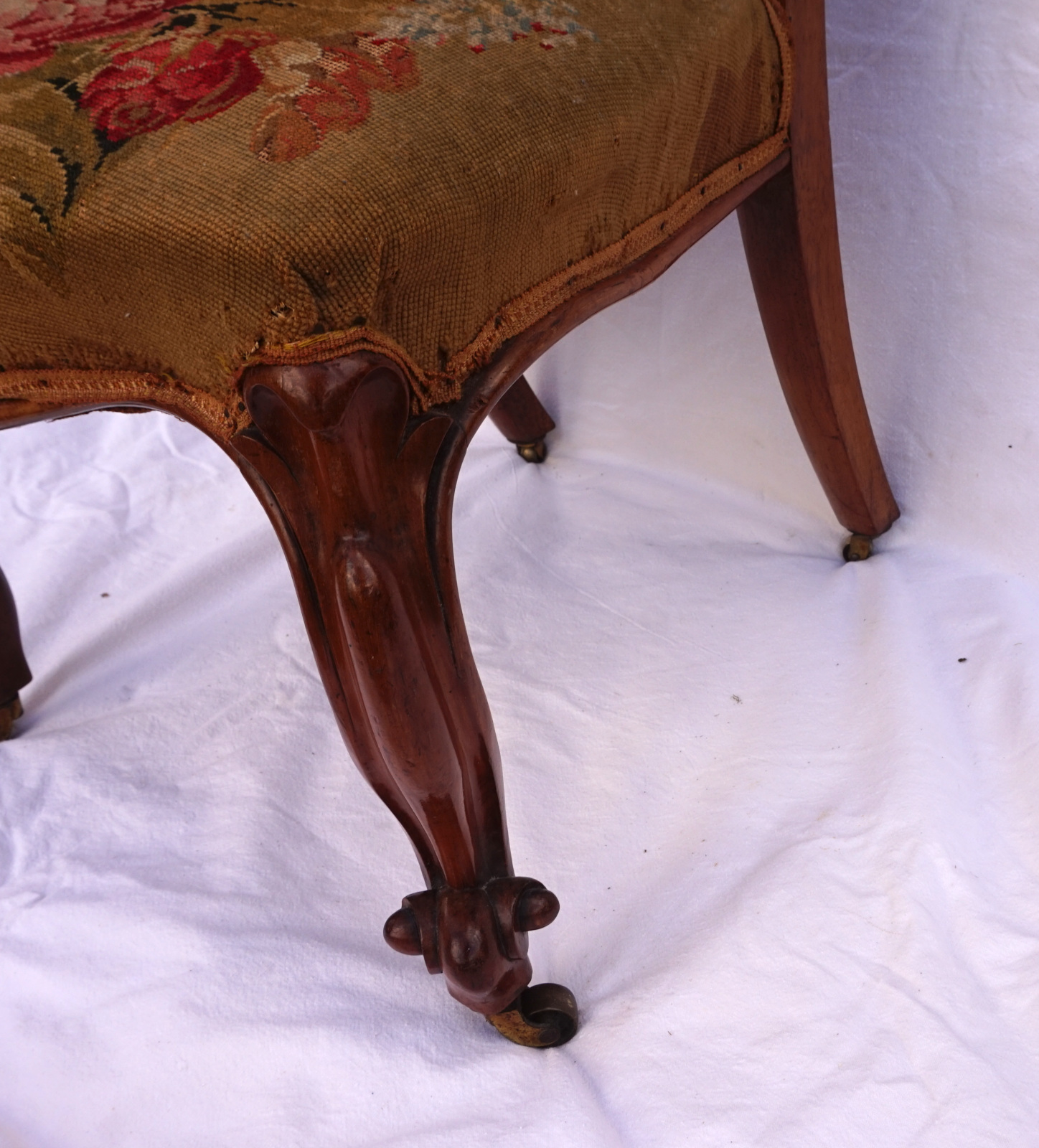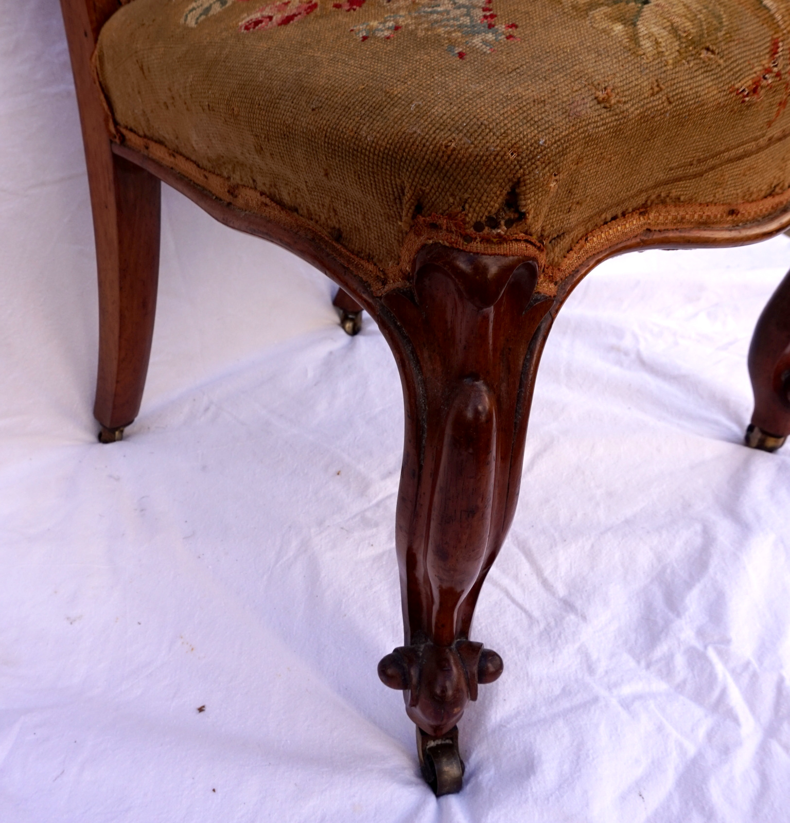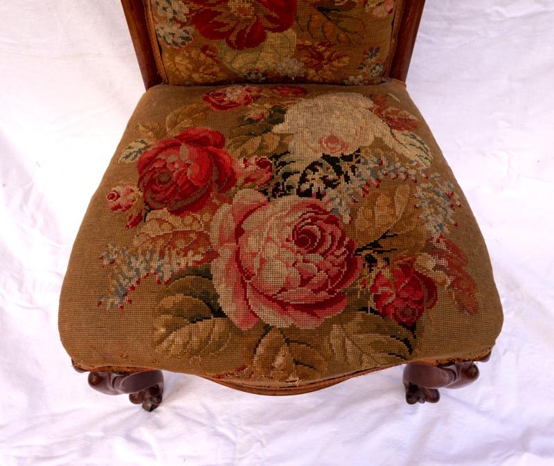 Victorian Rosewood Needlepoint Nursing Prayer Chair Mid 19th C