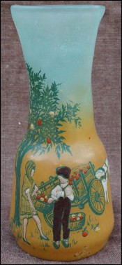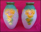 Art Deco Pressed Painted Satined Glass Pair Vases Espaivet SPV Paris 1930