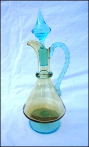 Italian Art Glass Opaline Pitcher Vase Firenze Empoli Mid Century 1960