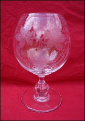 Antique Large French Daisy Friendship Cut Engraved Crystal Wedding Glass 1920