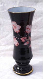 Enameled Crystal Glass Lily Lilium Ice Bucket Cooler Vintage