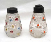 Art Deco Salt Cellar Set of 2 Enameled Glass Bakelite Stopper