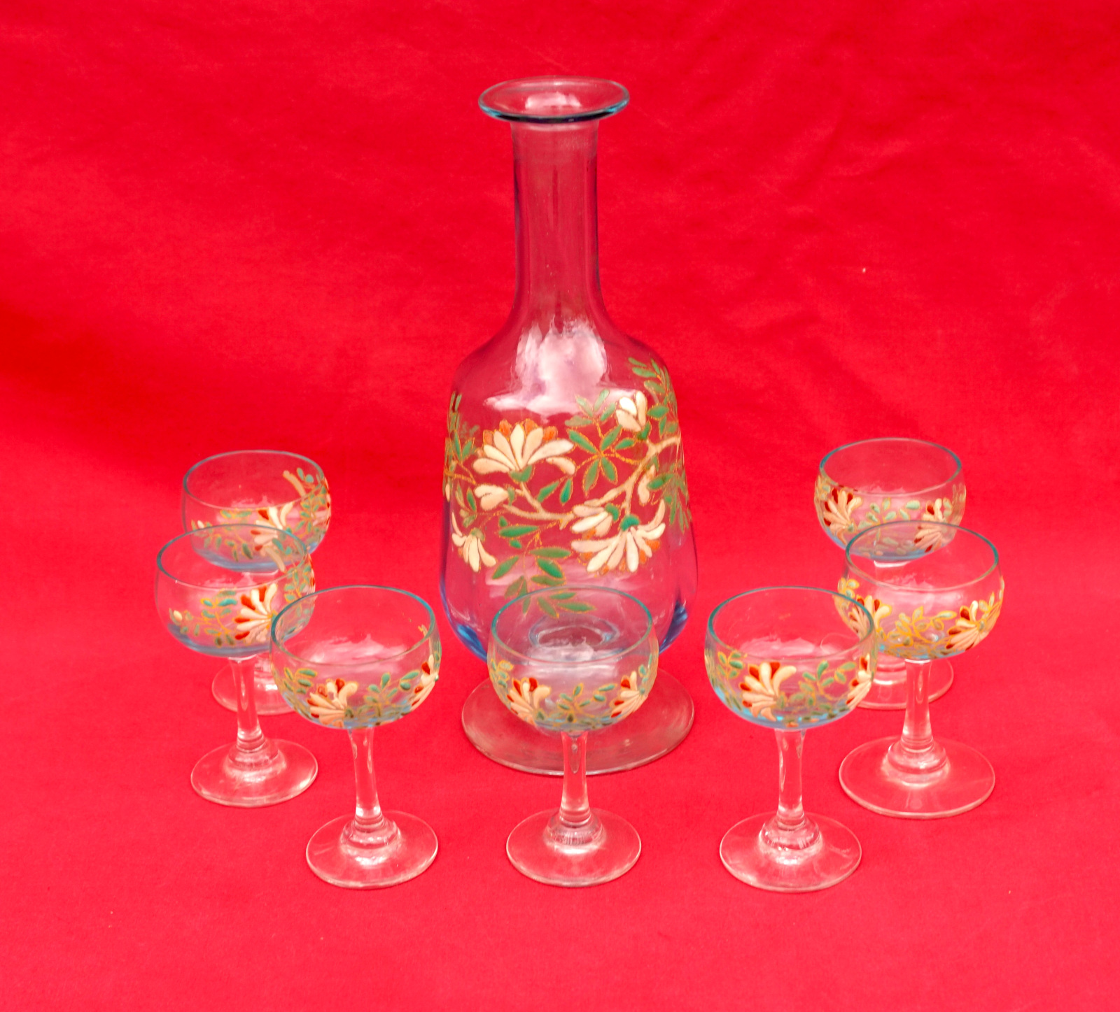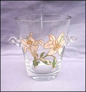 Enameled Crystal Glass Lily Lilium Ice Bucket Cooler Vintage