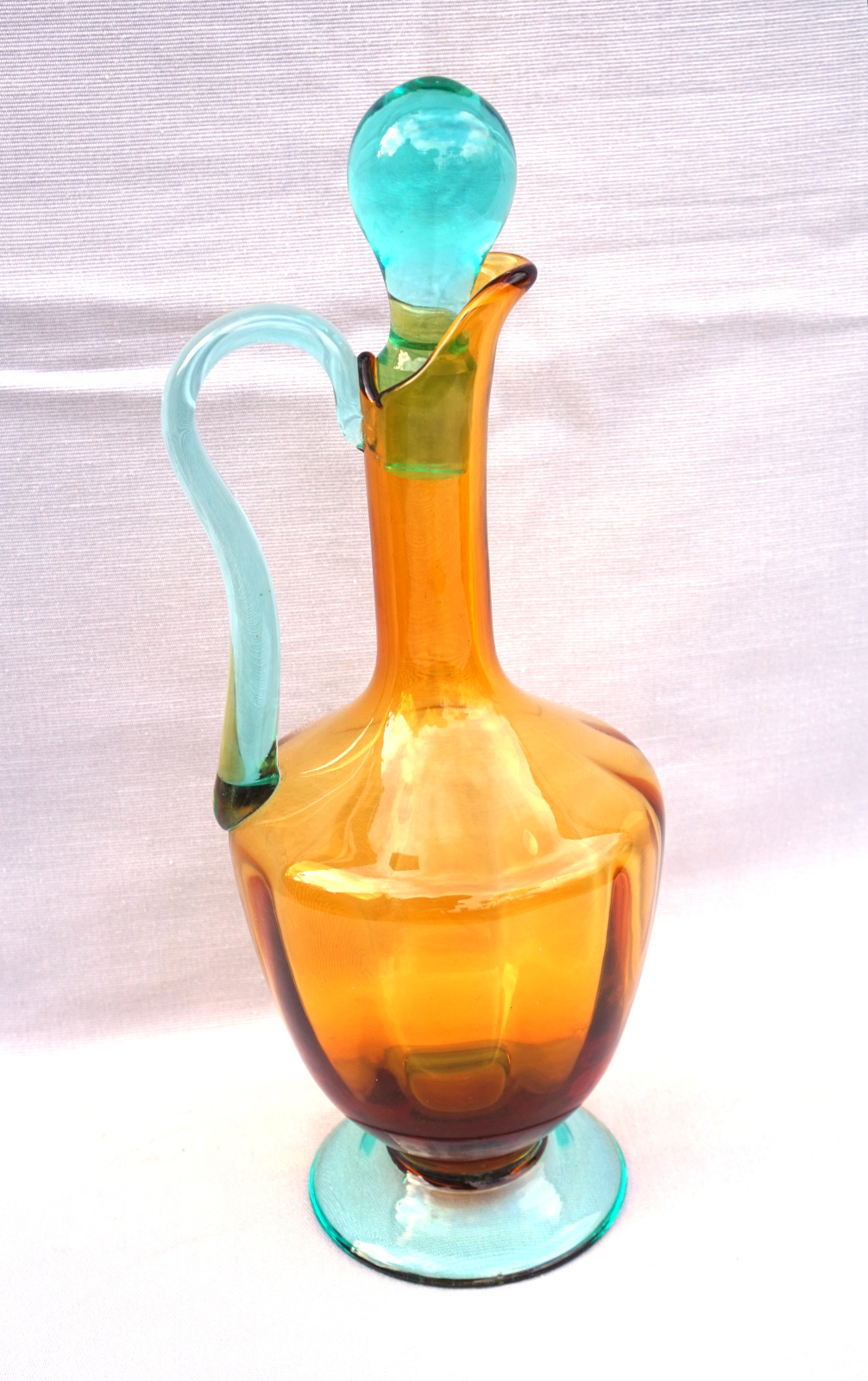 Art Glass Amber Blue Large 13 1/2" Decanter Ewer Stopper George Sand Portieux 19th C