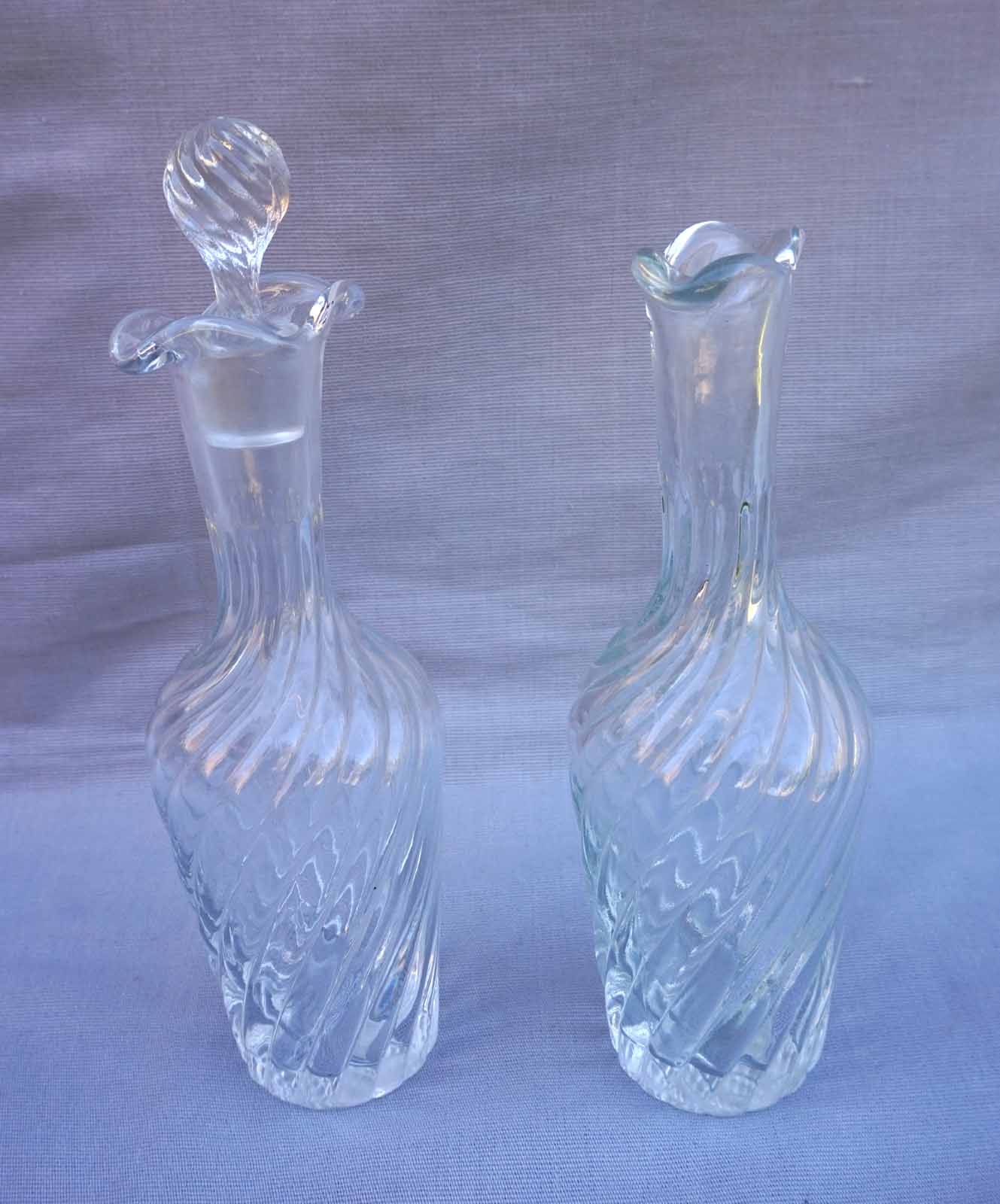 Oil Vinegar Pressed Twisted Glass Pair Cruets 1910
