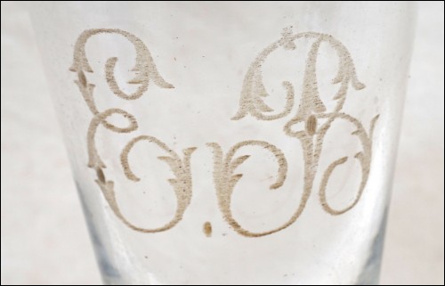 Antique Absinthe Glass Engraved Blown Glass Mono EB 19th C