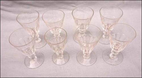 Ensemble de 8 verres à vin en cristal taillé à cotes plates Caton? Baccarat ou St Louis, vers 1900. Hauteur 10,5 cm, diamètre 6,1cm.