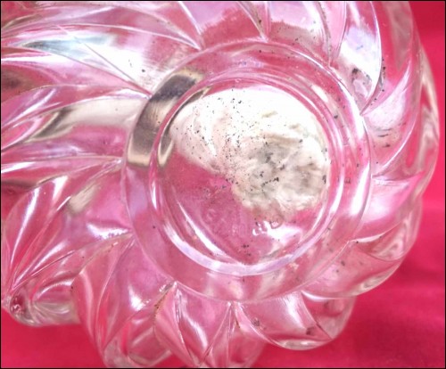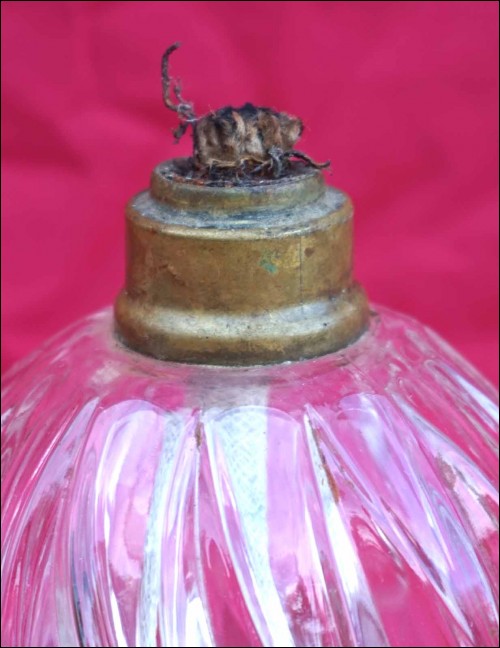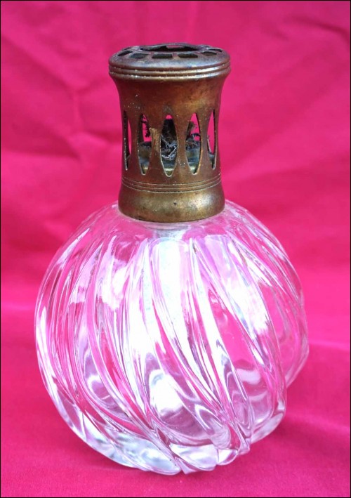 Vintage fragrance catalytic oil burner lamp with swirl clear glass made by Lampe Berger Paris during the 1960's. It's signed on the burner and on the bottom of the glass. 5 3/4" (14cm) height, 3 1/2" (9cm) diameter to the body. The swirl glass is in perfet condition, the catalytic burner has bumps as shown by the following pictures.