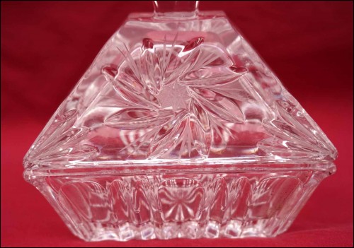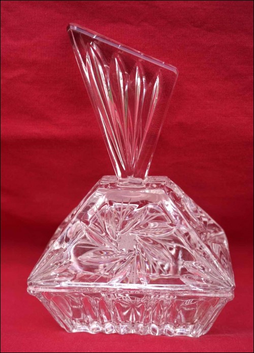 Bohemian Art Glass Art Deco Engraved Crystal Perfume Bottle Powder Box