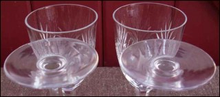 Set of 4 stemware claret wine glass in clear cut crystal in Chantilly pattern by Saint Louis France made during the 1910's. Perfect condition no chips or cracks. They are not signed. 5"3/8 high 2"1/4 diameter.