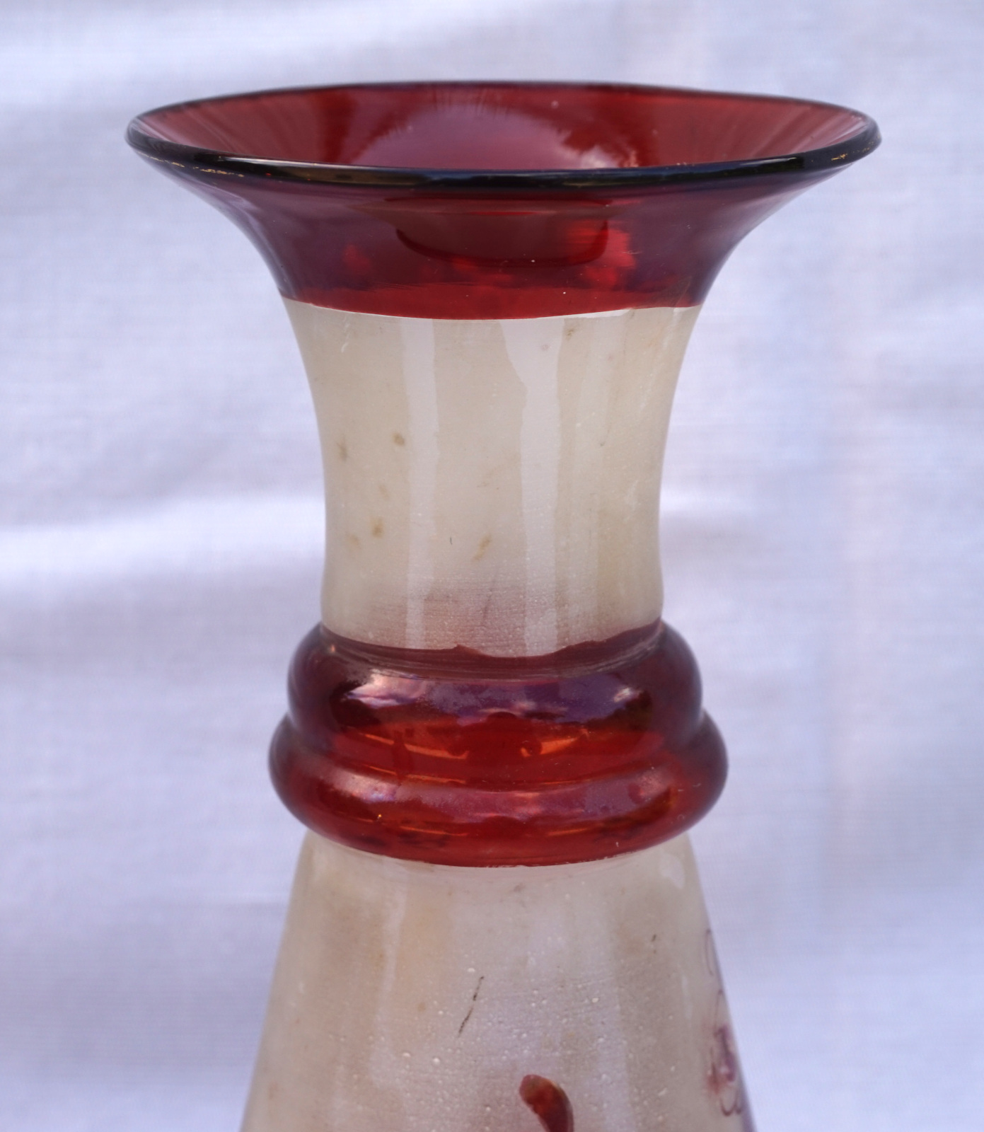 Czech Art Glass Ruby Red Gilt Frosted Glass Bird Foliage Vase Early 20th C