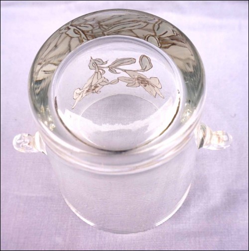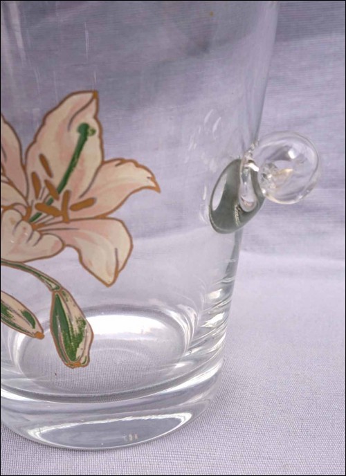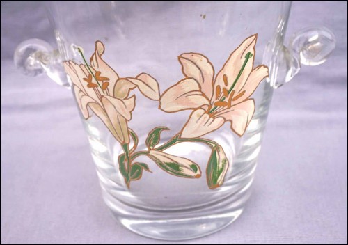 Enameled Crystal Glass Lily Lilium Ice Bucket Cooler Vintage