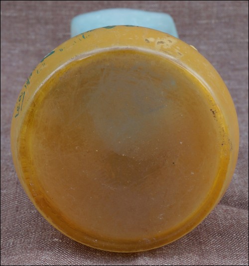 French enameled vase showing the picking apple made by Legras in Paris during the 1900's. Perfect condition, signed in front Leg. 9 1/4" high.