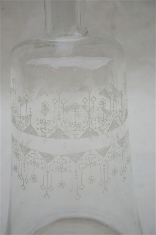 Carafe à eau de fleurs sécessionniste Allemagne vers 1910. Il ne semble pas que ce soit son bouchon d'origine. Hauteur 22,8 cm.