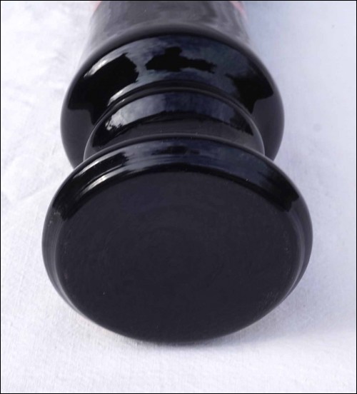 Harrach Bohemian Art Glass Black Enameled Vase Flowers Vintage 1950's