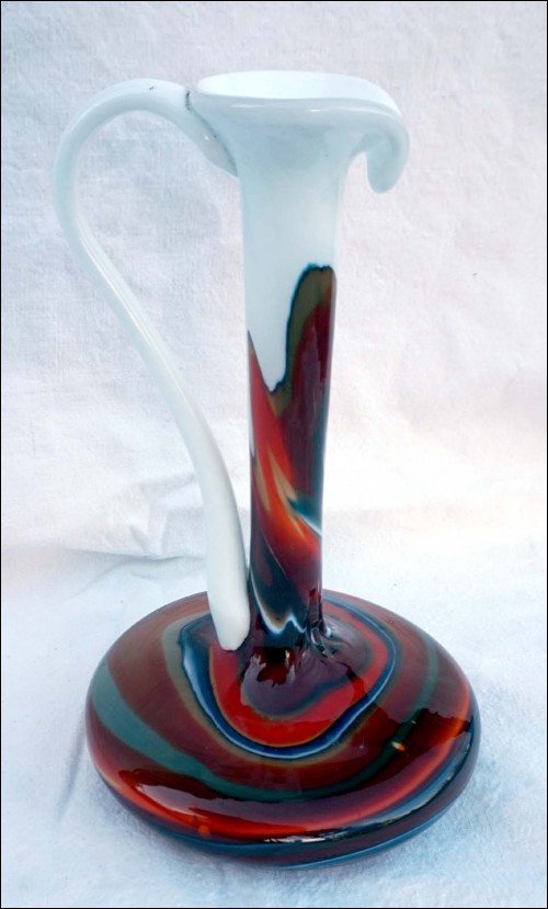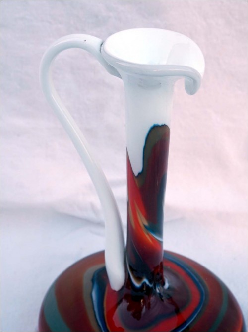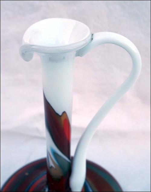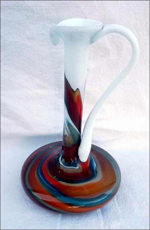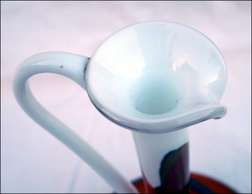 Italian Art Glass Opaline Pitcher Vase Firenze Empoli Mid Century 1960