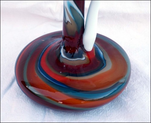 Vase pichet en verre opalin multicolore de Florence, Empoli vers 1960. Ce travail artistique verre est soufflé à la bouche, ce qui en fait une épreuve unique. Il est en bon état. Hauteur 24 cm, diamètre 15 cm.