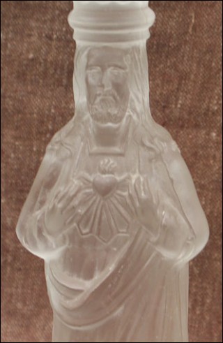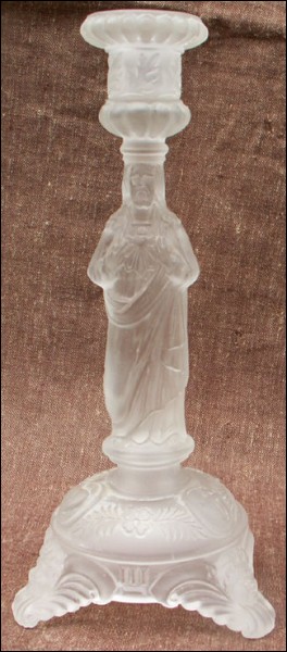 Jesus Sacred Heart Candlestick French Glass Portieux
