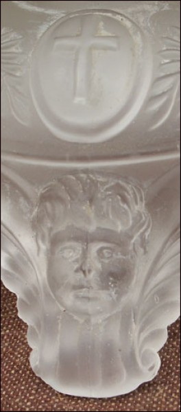 Candlestick in frosted glass showing Jesus with Sacred Heart made by the famous Porthieux factory in France during the 1940's. Perfect condition. 11 1/4" high.