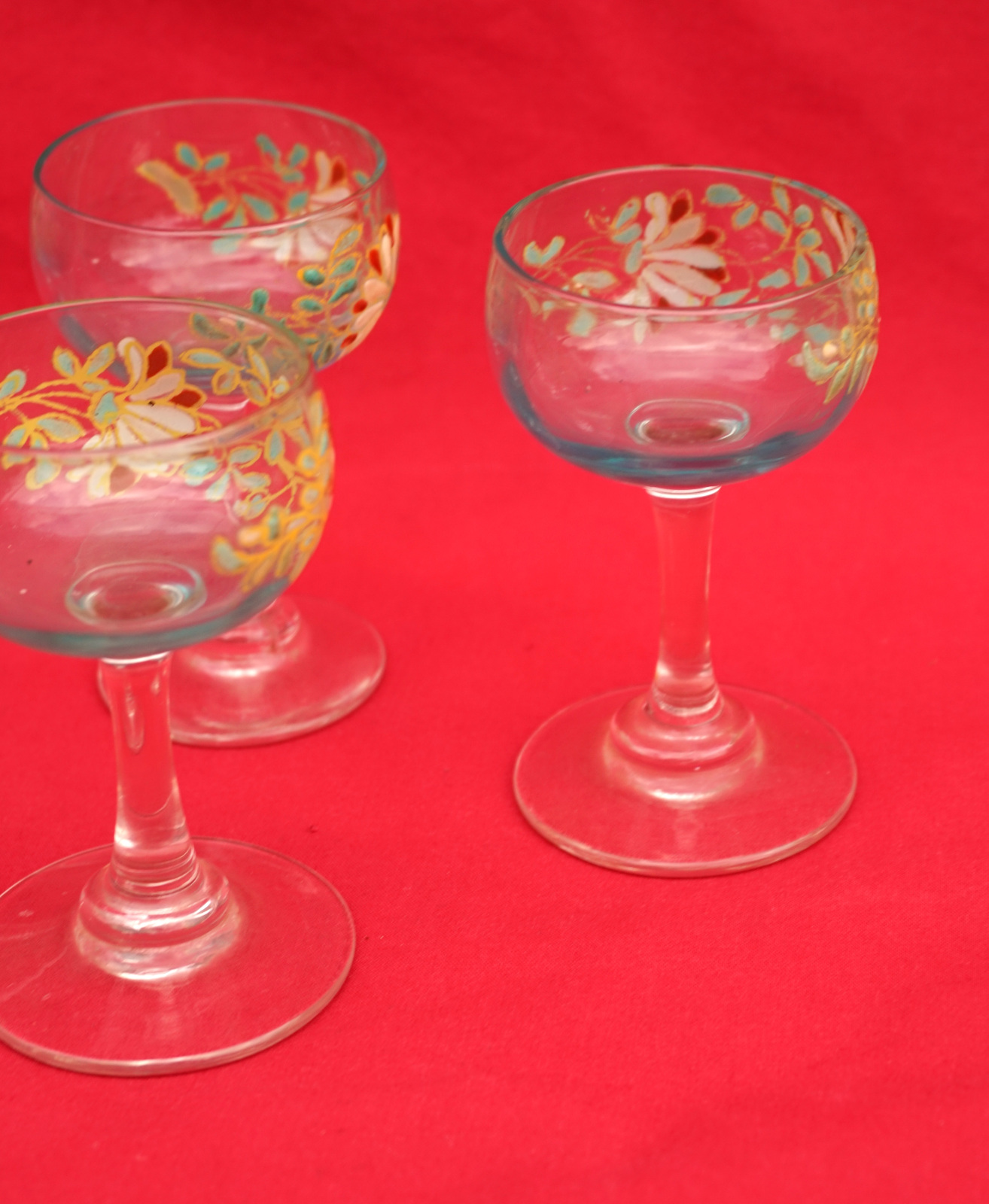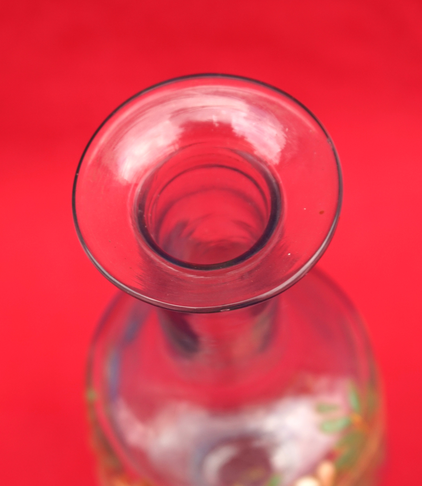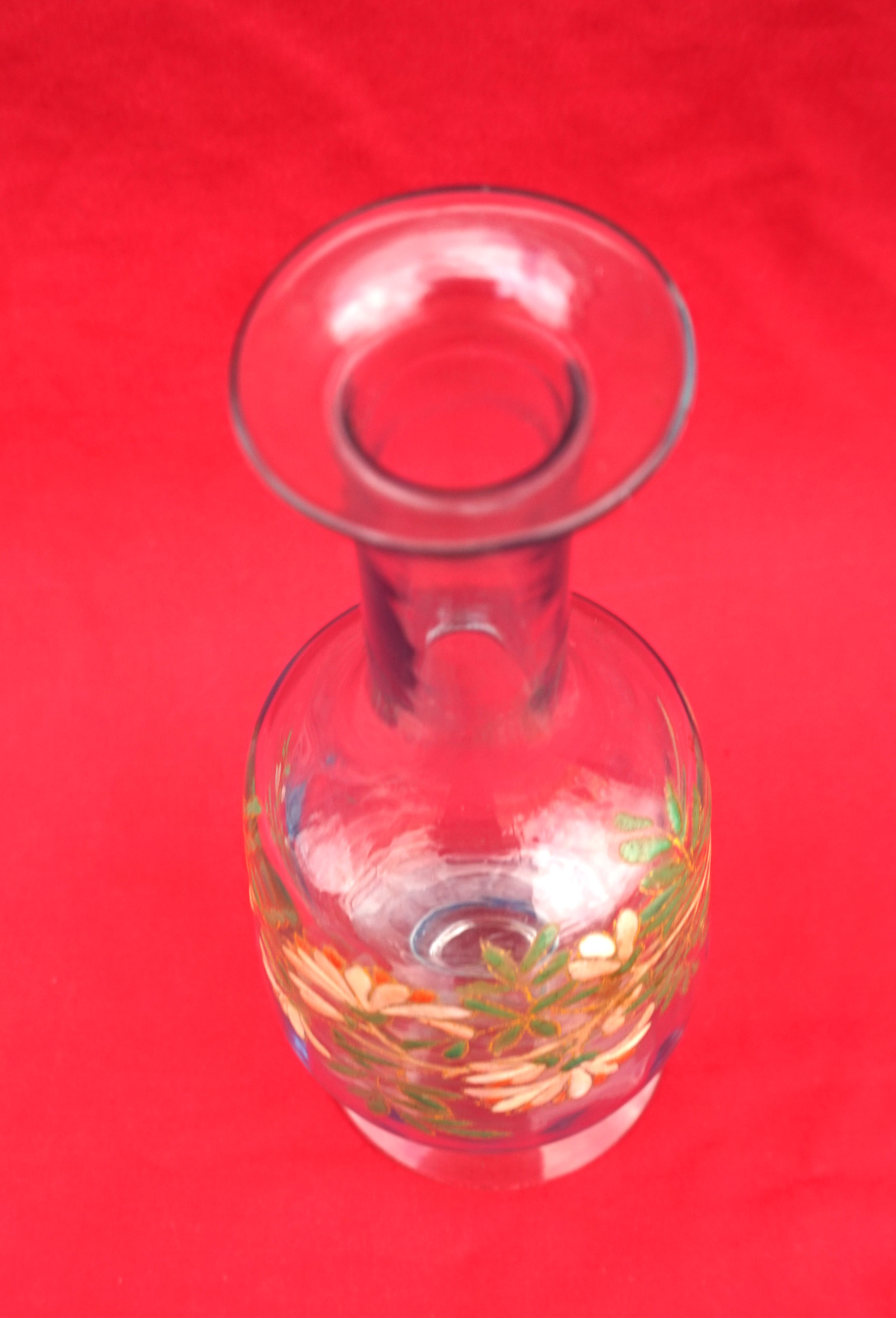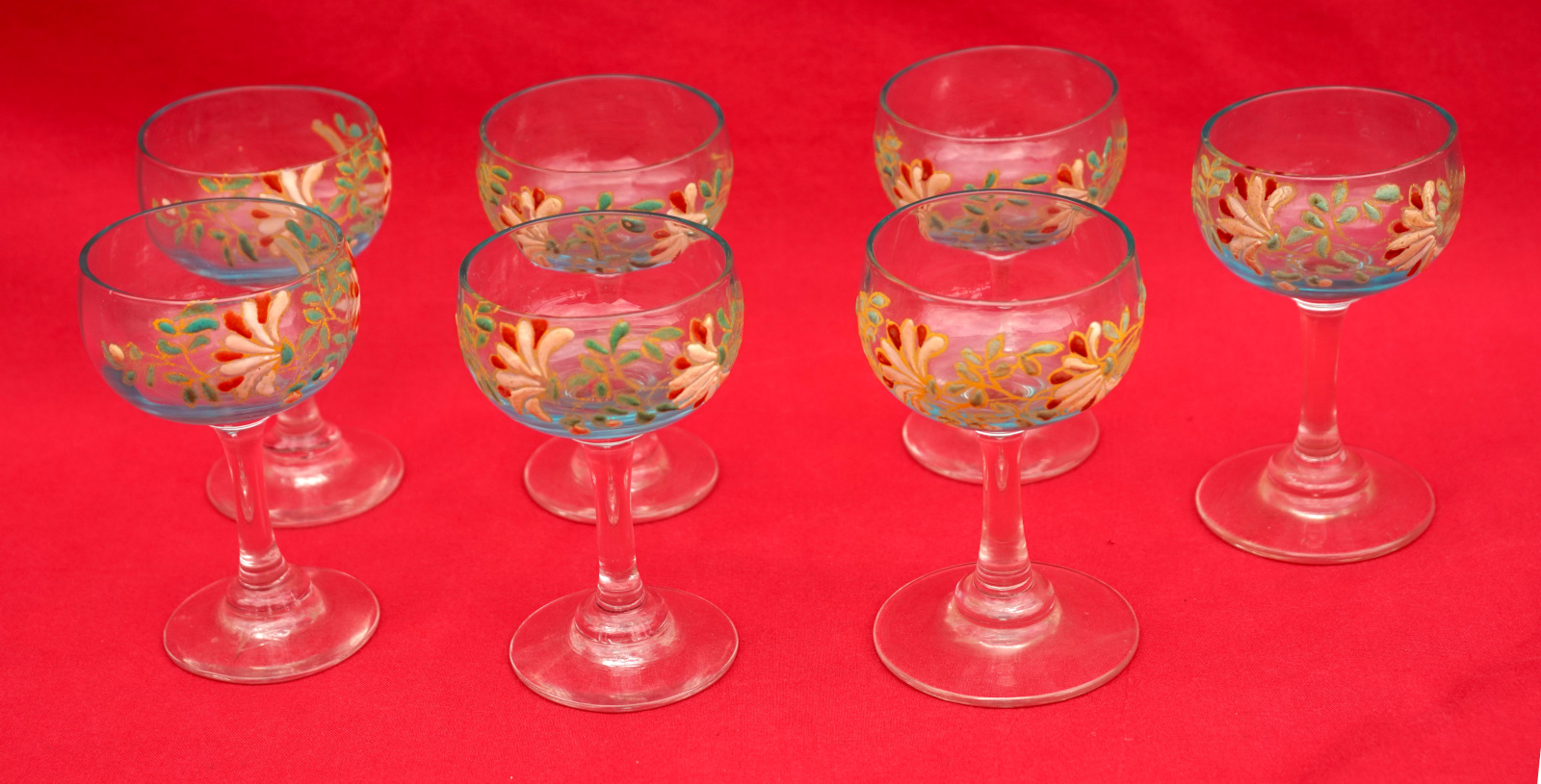 Legras Enamel Glass Cordial Set Cruet 7 Glasses Flowers 1900's