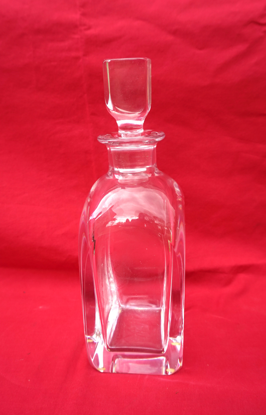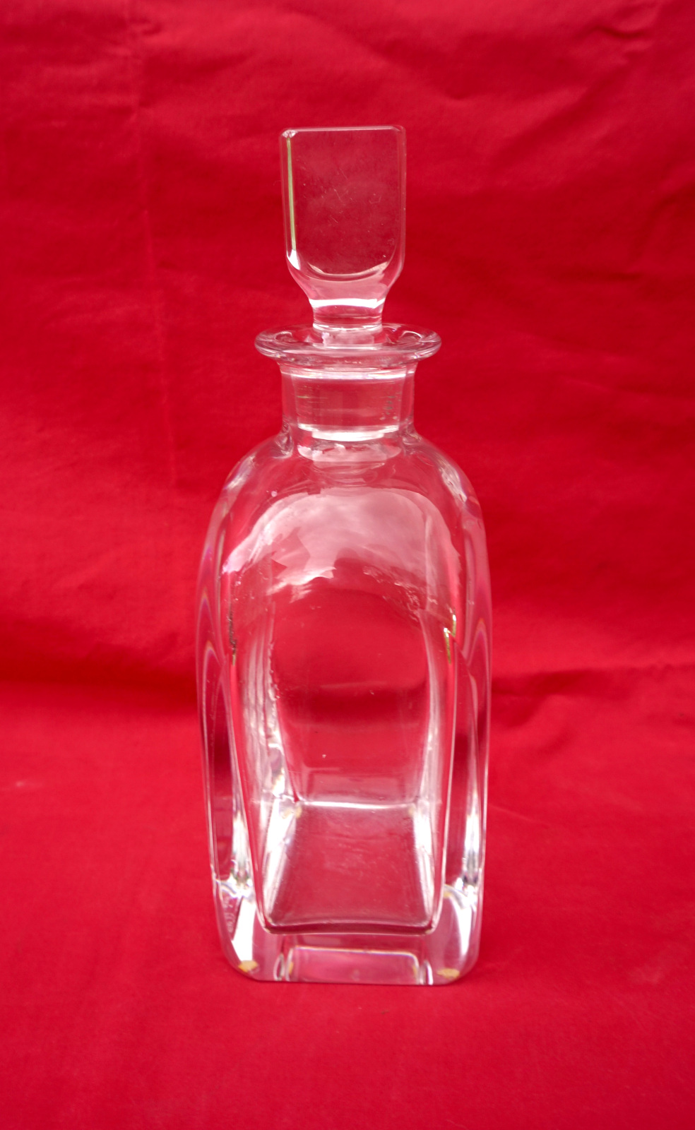 Sweddish art glass clear crystal decanter carafe with stopper made by Vick Lindstrand in Orrefors during the 1960's. It's signed on the bottom. 9 1/4" (23.5cm) height with stopper 3" (7.7cm) width by 3 1/8" (8.5cm) depth. Perfect condition.