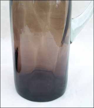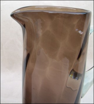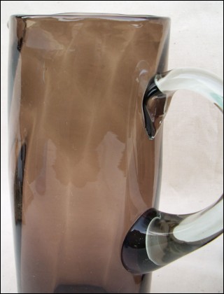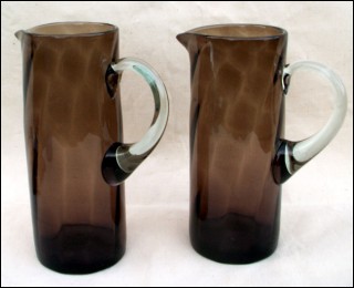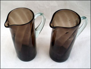 Pair Jug Pitcher Amber Twisted Handblown Glass Blenko
