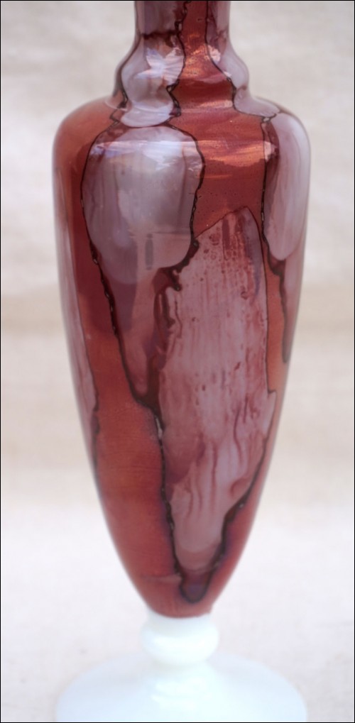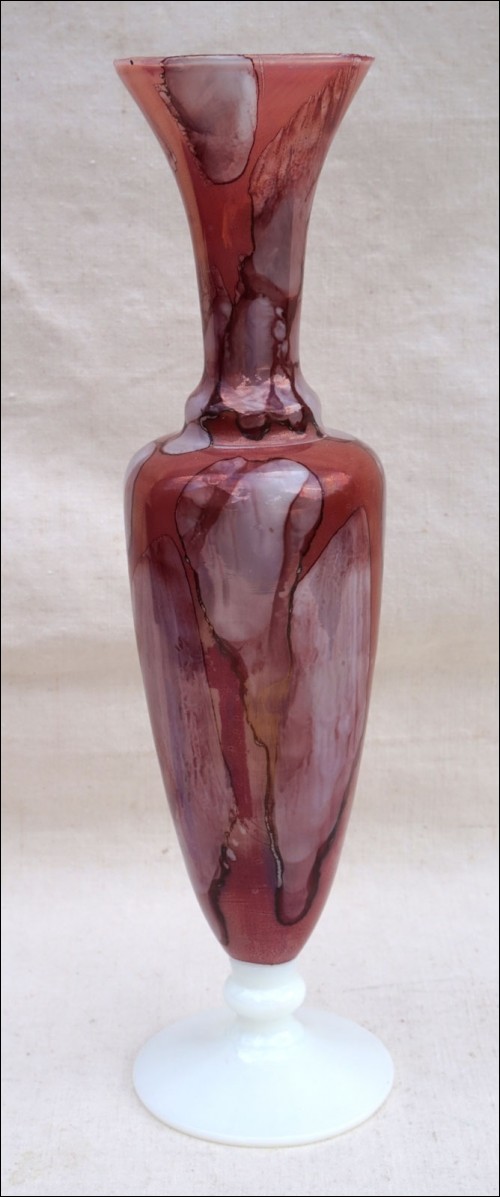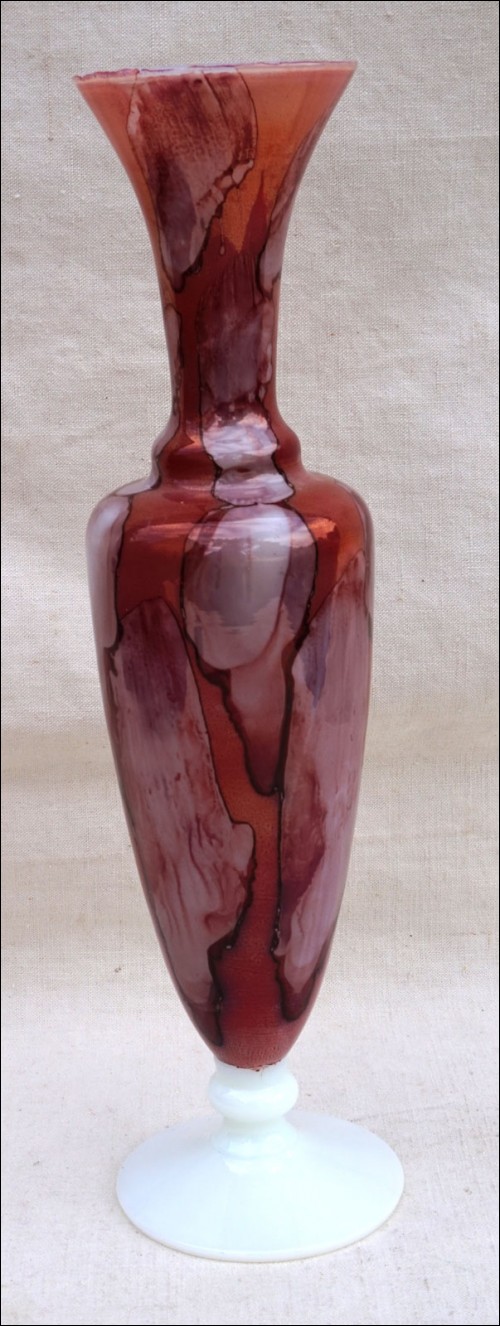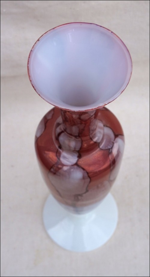 Vase en verre de lait doublé de Stelvia à Empoli vers 1960. Hauteur 16,3 cm, diamètre au pied 7 cm. Très bel état.