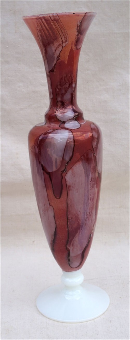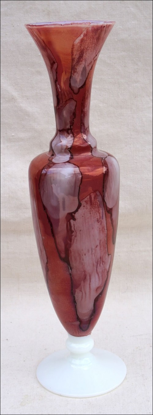 Vintage footed vase in lined milk vase made by Stelvia in Empoli Italy during the 1960's. 6 3/8" (16.3cm) height 2 3/7" (7cm) diameter to the base. Perfect condition as presented on the following pictures.