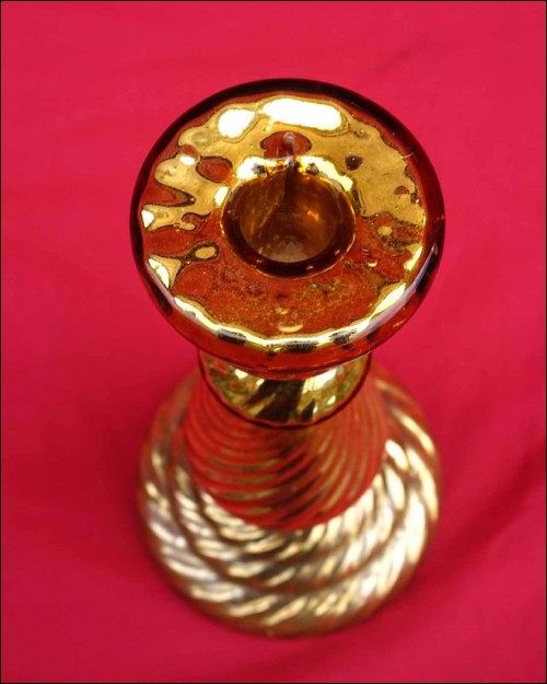 Vintage Gold Mercury Twisted Glass Candlestick Art Glass