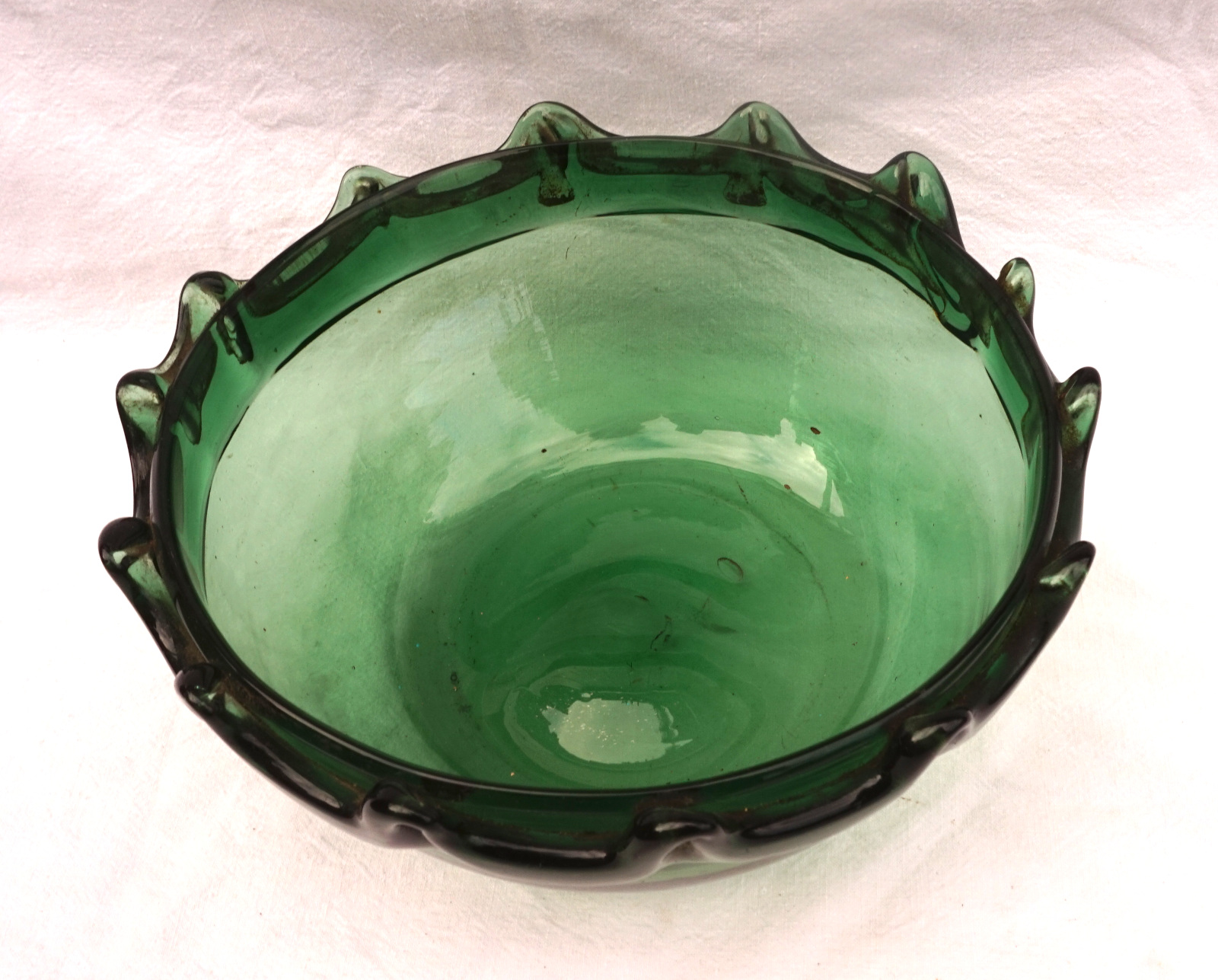 Vintage french art glass hand blown glass large bowl made by Biot Provence during the 1970's. 10" (26.5cm) diameter, 4 1/2" (11.5cm) height. Perfect condition.
