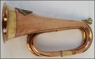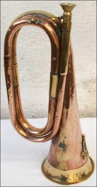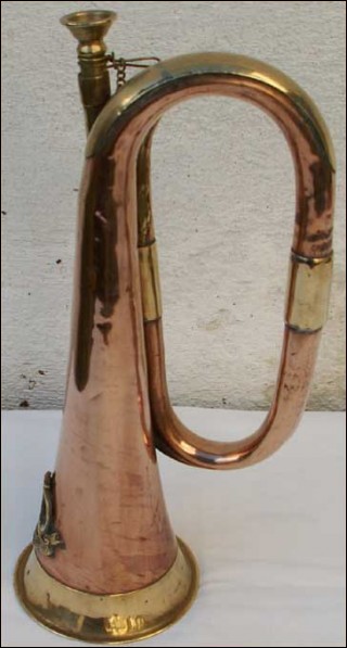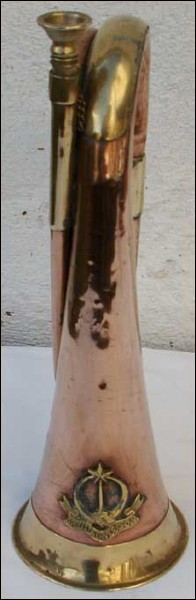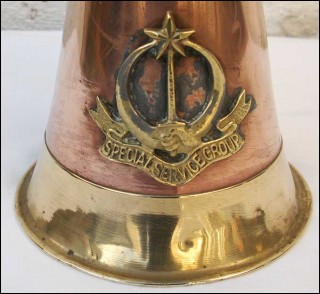 Bugle militaire anglais du spécial service group, vers 1950, lors de sa création. Le "Special Service Group" ou SSG est un détachement indépendant des commandos de l'armée du Pakistan de Sa Gracieuse Majesté. Longueur 29 cm.