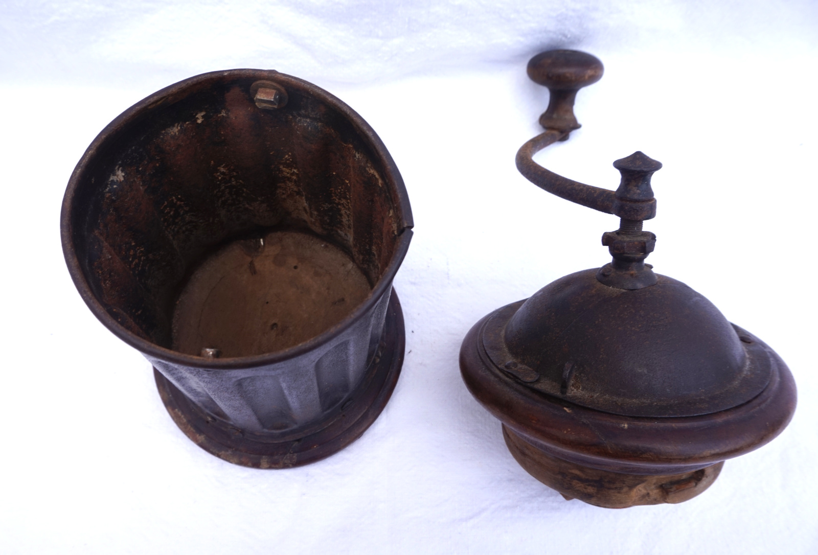 French coffee grinder model G3 made by Peugeot Freres during the 1900's. It's engraved Peugeot with the Lion and SGDG France G3. 9 1/4" (23.5cm) height, 5" (12.7cm) diameter. Beautiful condition.