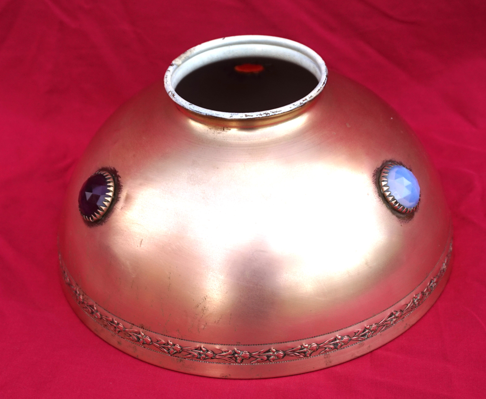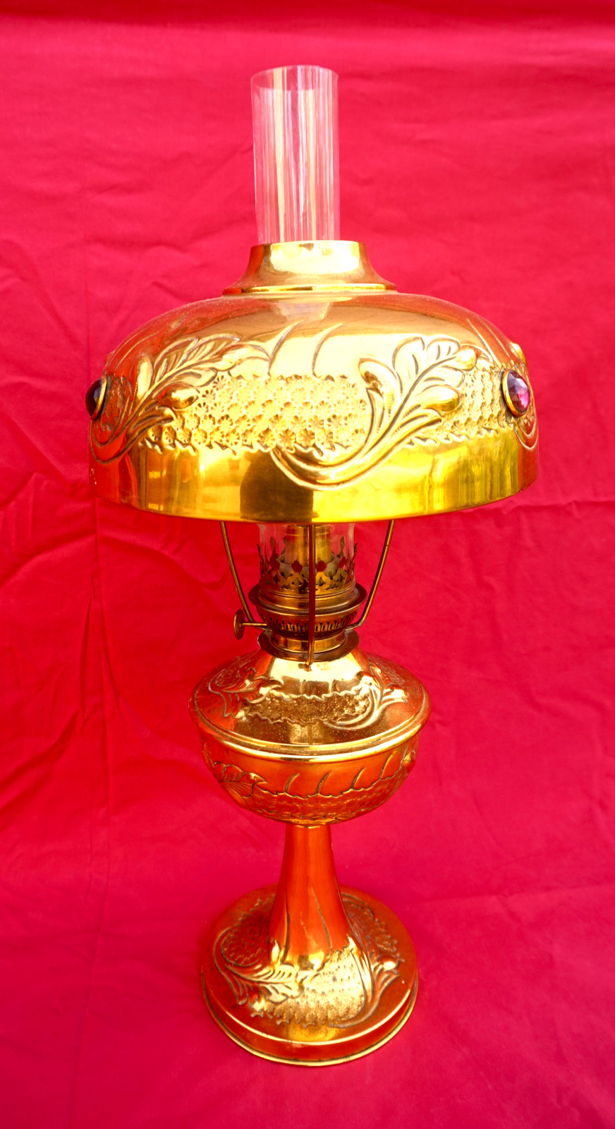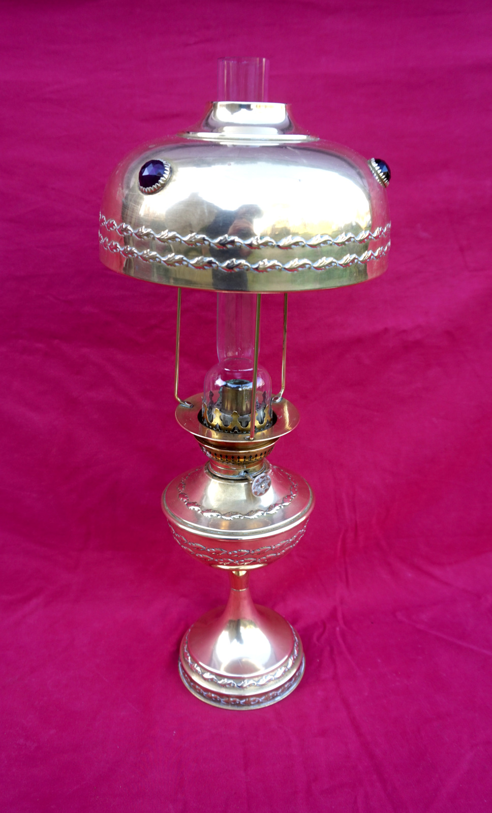 Brass Kerosene Oil Lamp Jeweled Glass Shade Hasag Mint