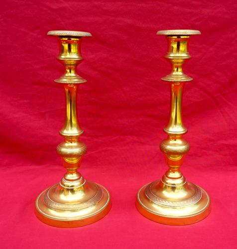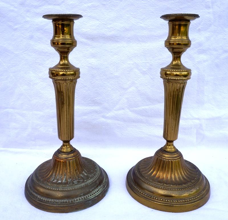 Louis XVI style Brass Pair Candlestick late 19th C