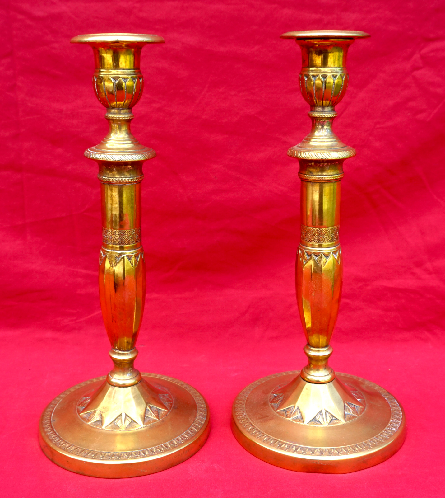 English Gilt Brass Guilloche Pair Candlestick Late 18th C Adams Area