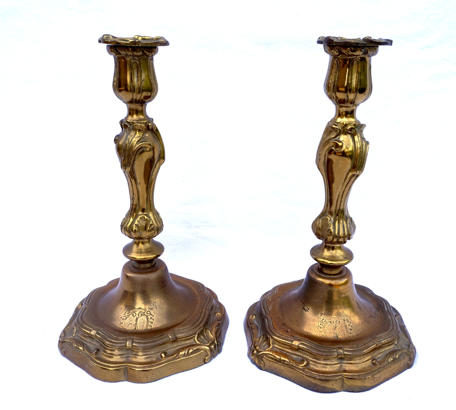 Brass Louis XV Pair Candlestick Noble Wedding Medallion 18th C